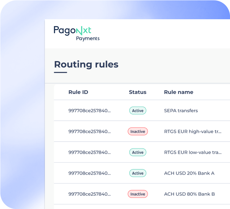 Integrate with a simple API, based on payment industry standards. Easily create, modify, and remove routing rules through an intuitive interface.